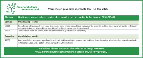 gevonden en vermiste dieren in en rond Beverwijk, Heemskerk, Castricum en