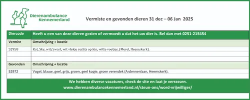 gevonden en vermiste dieren in en rond Beverwijk, Heemskerk, Castricum en