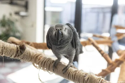 vergeten de inmiddels 25-jarige en enigszins brutale roodstaartpapegaai Kobus.