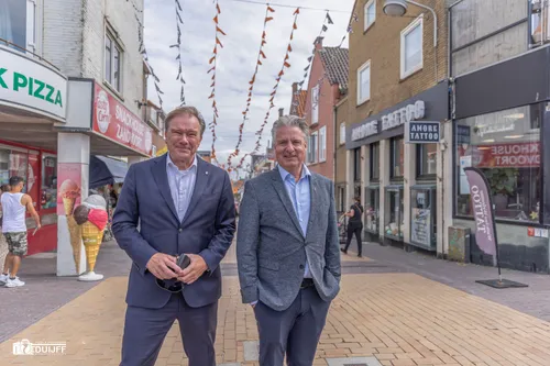 Burgemeester Moolenburgh en wethouder de Kloet namen ons mee het dorp in en de media konden vragen stellen....
