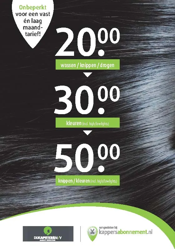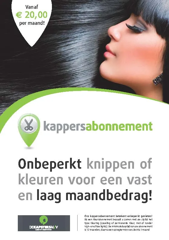 De Kapsters M/V start een naar eigen zeggen unieke actie. Via abonnementen kunnen klanten nu voor een vast maandtarief onbeperkt laten knippen en/of kleuren.