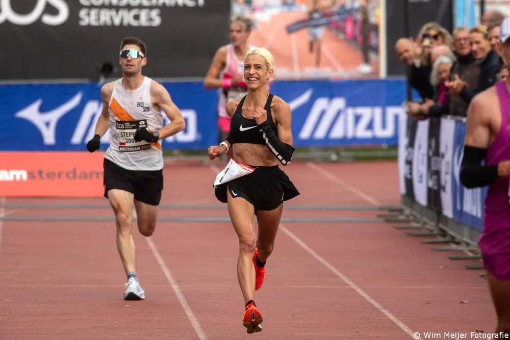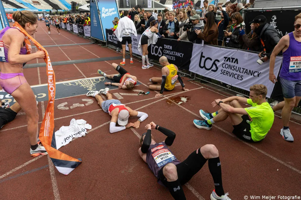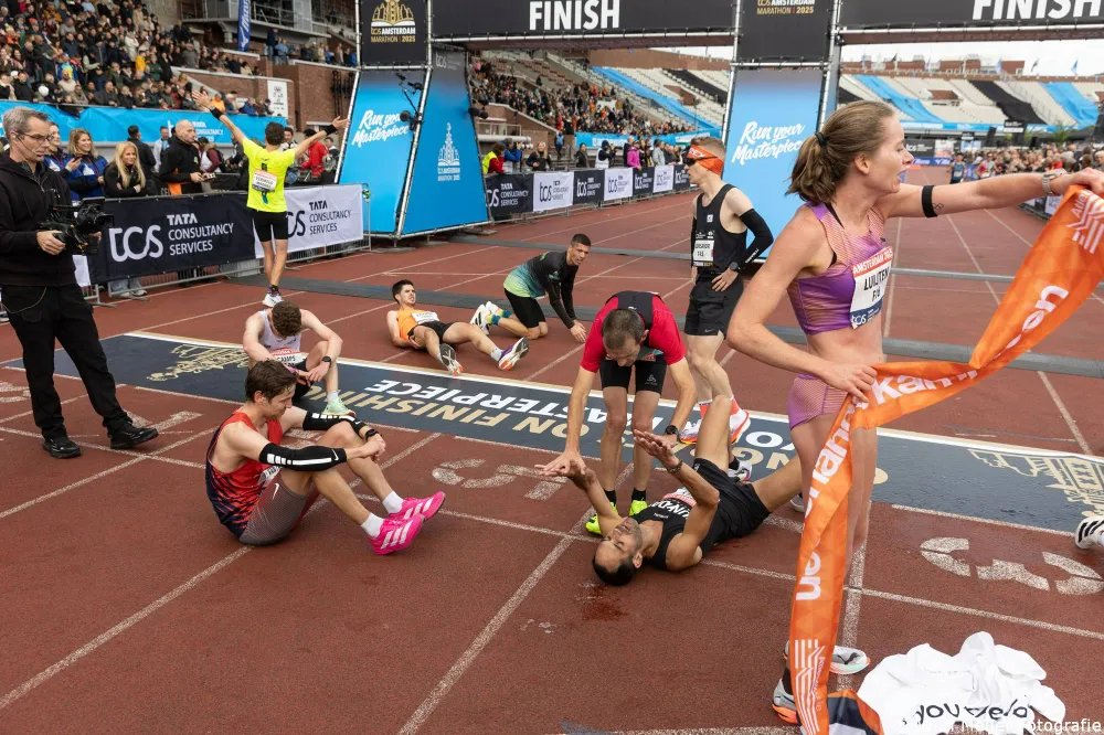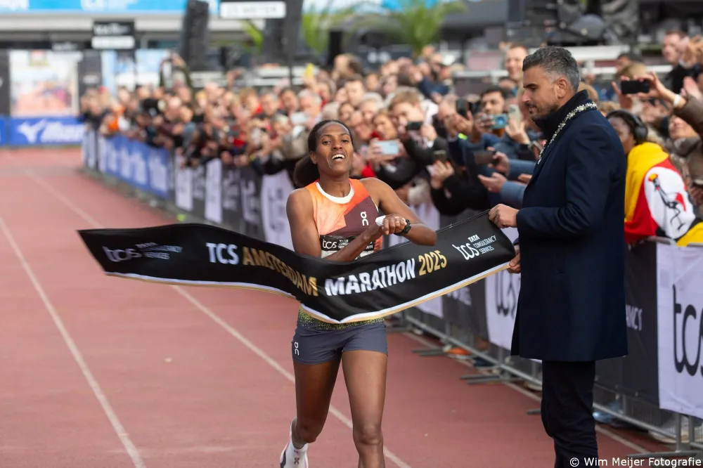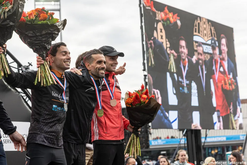 De echte strijd om de overwinning in de Amsterdam Marathon werd bij de mannen gewonnen door de keniaan Geoffry Toroitich Kipchumba in een nieuw parcoursrecord van 2 uur, 3 minuten en 31 seconden. Daarmee liep hij het record uit 2021 met acht seconden uit de boeken. Bij de vrouwen was Aynalem Desta uit Ethiopië de snelste vrouw. De 21-jarige finishte in 2 uur, 17 minuten en 36 seconden.